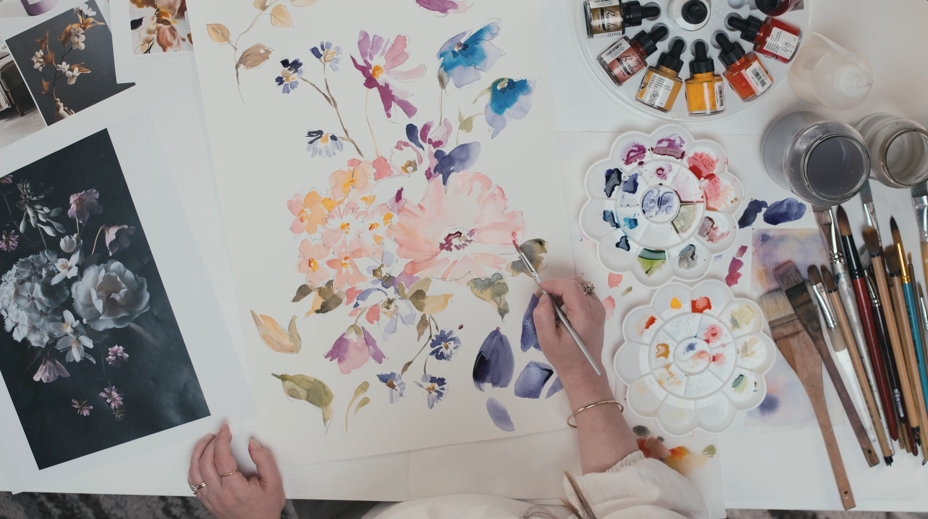 Learn 3 unique styles of watercolour and the tools you need to transform your artwork into a commercial repeat ready for sale.