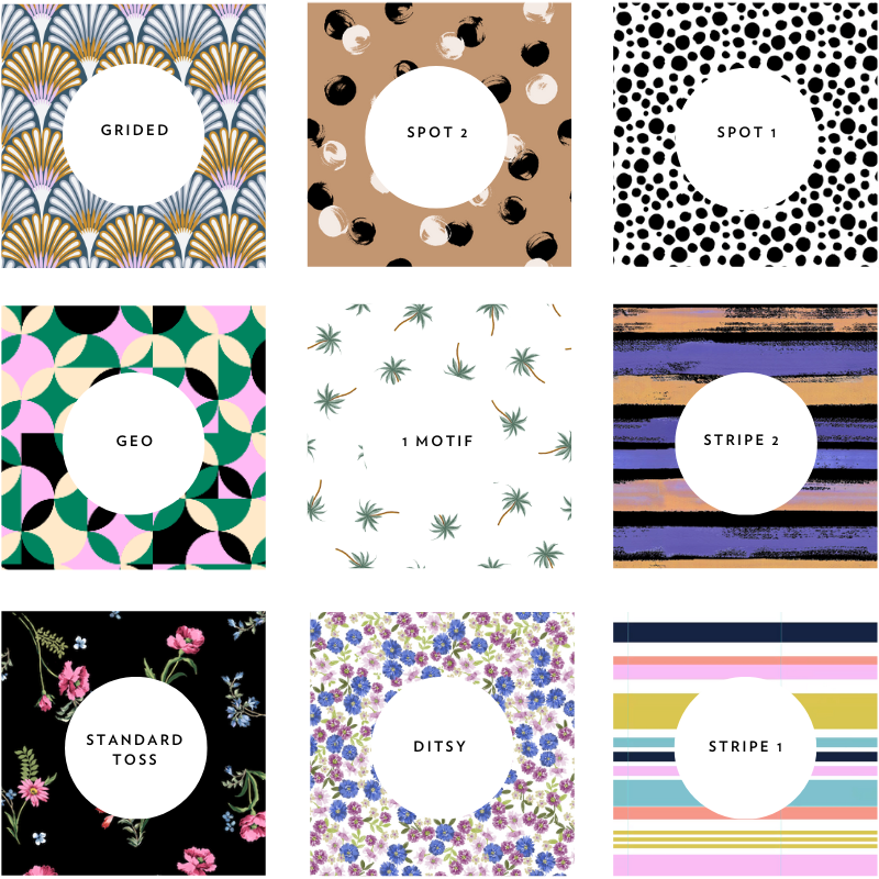 25 Design Styles: From florals and abstracts to animal skins and diagonal repeats.