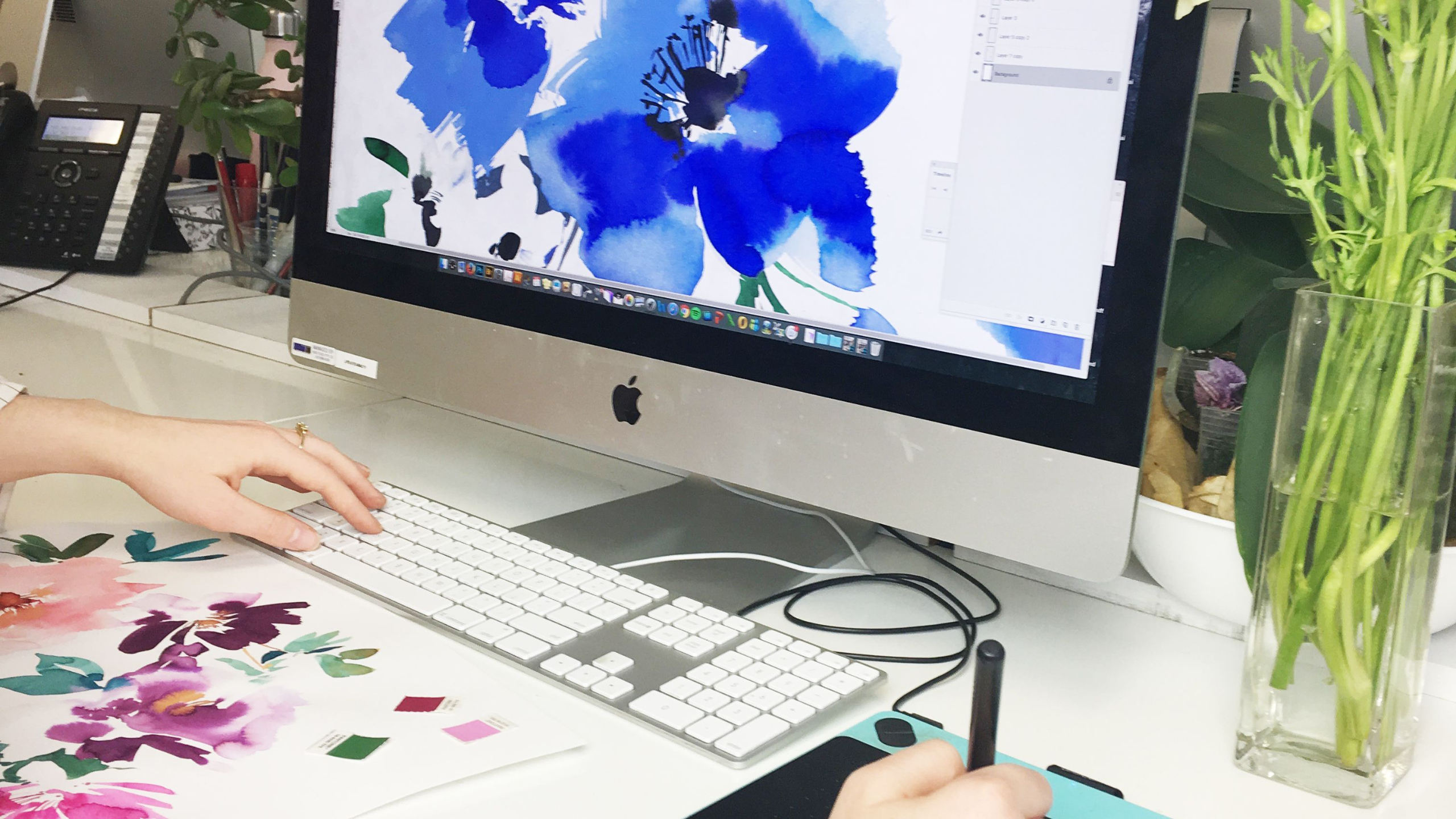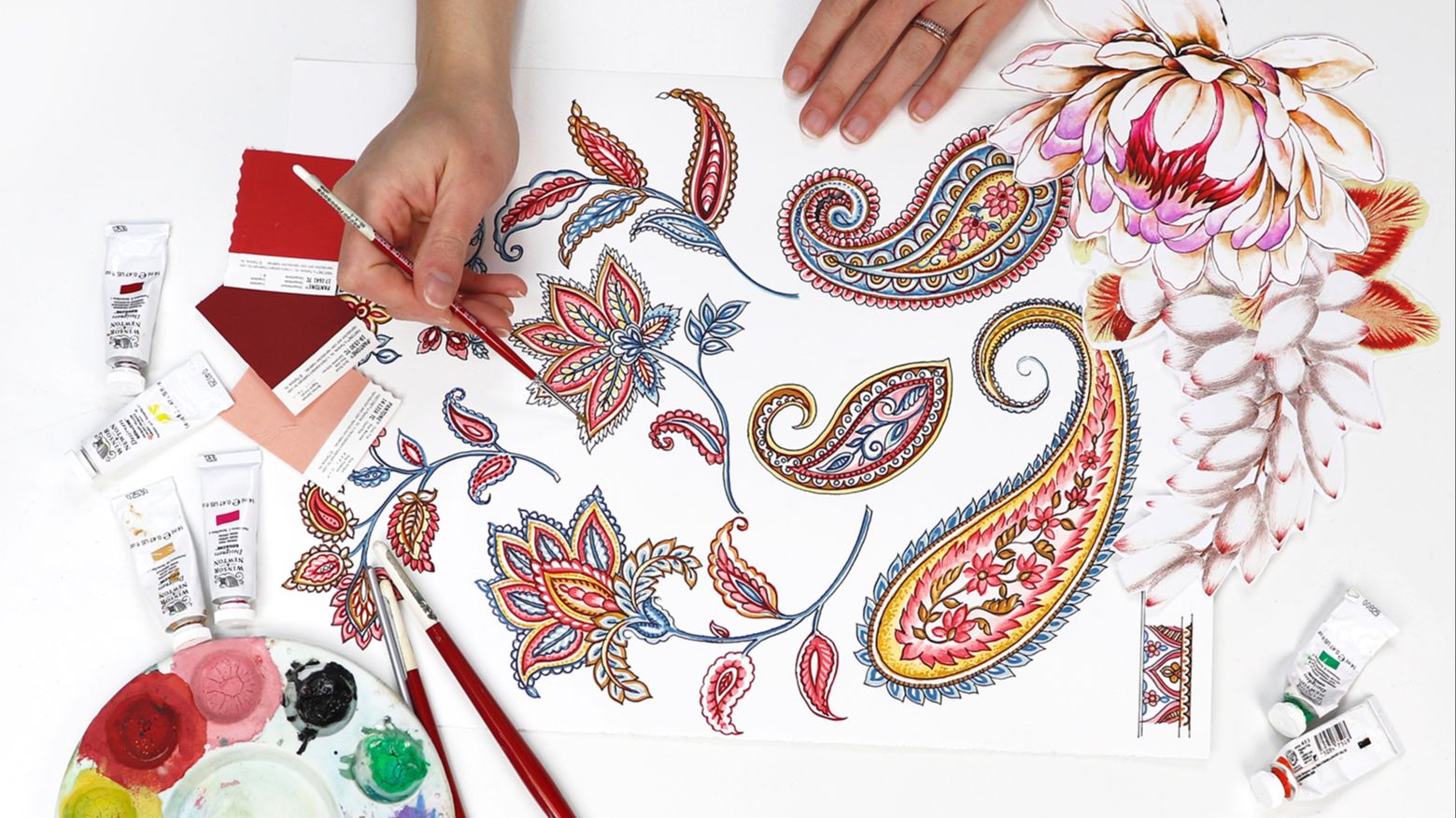 Flat gouache paint, vintage style flowers. Learn from our master painter how to create these beautiful blooms then take them into photoshop to create a design.