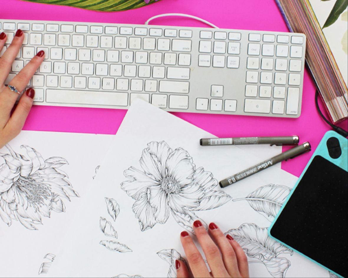 We're proud creators of stunning textile and surface designs gracing the collections of world-renowned brands. As one of the world's leading studios, we've gathered our team in the studio to share their design and painting skills with you.