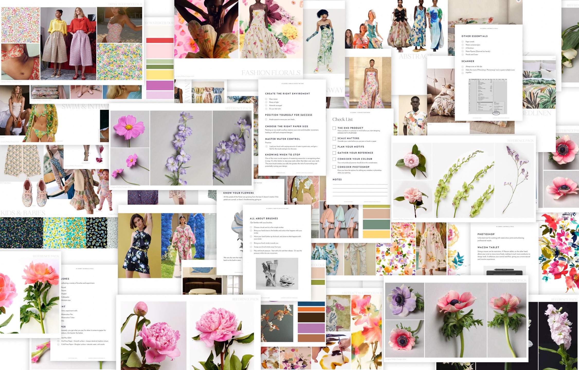 You’ll also receive a 35‑page Floral Photo Inspiration PDF to spark ideas, plus a Warm‑Up PDF, a Materials & Tools list, and a step‑by‑step Checklist to keep your workflow smooth and confident from the very start.